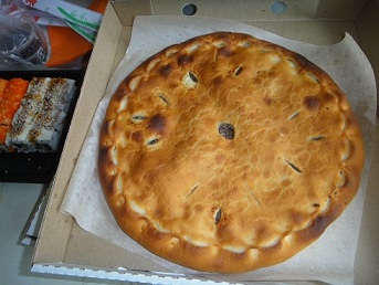 Ну вот и мой маленький фотоотзыв Купила Купон на бонусные деньги в КупиКупон(ссылку на акцию давала выше), прильстило еще то, что бонусом идет Карта постоянного клиента со скидкой 30%. Заказ сделала по интернету, в примечании написала про купон и бонус. Диспетчер перезвонил на мобильный в течении 5мин., уточнили заказ, номер купона и время ожидания 1,5-2 часа. В заказе было: роллы Канада, Калифорния и Филадельфия. Осетинские пироги - с мясом и сыром и луком. Курьер приехал в назначенное время, приятно удивило, что был чек ККМ, т.к. обычно по купонам ко мне приезжали просто с накладной. Карту постоянного клиента положить не забыли, это картонная карточка-визитка, которая была степлером прикреплена к чеку. Пироги доставили горячими, что очень обрадовало. Пироги заказывала весом 600гр. Внешне пироги красивые, в масле "не плавают", как в Корлеоне, т.е. коробки внутри не жирные. Ну и самое главное вкусные :), дети тоже оценили пирог с мясом. А вот роллы, которые заказывала только для себя, меня огорчили своим размером Такие малюськи были, что я их съела одна за полчаса и пришлось "догоняться" пирогами Но фото стандартный лоток, 3 вида роллов(Канада, Калифорния и Филадельфия). Как видно из фото, свободного места в лотке полно да и размерчик роллов небольшой. Да, роллы вкусные, но не более, не могу сказать про них "о,пальчики оближешь!" Вообщем, радости и насыщения роллы не принесли