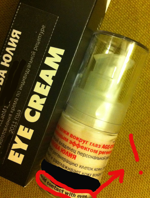 Еще один прикол по поводу этого крема На нем написано "избегать контакта с глазами"! Ничего себе предостережение на креме для глаз, который как-никак, ну хоть чуть-чуть, но с глазами все-таки контактирует